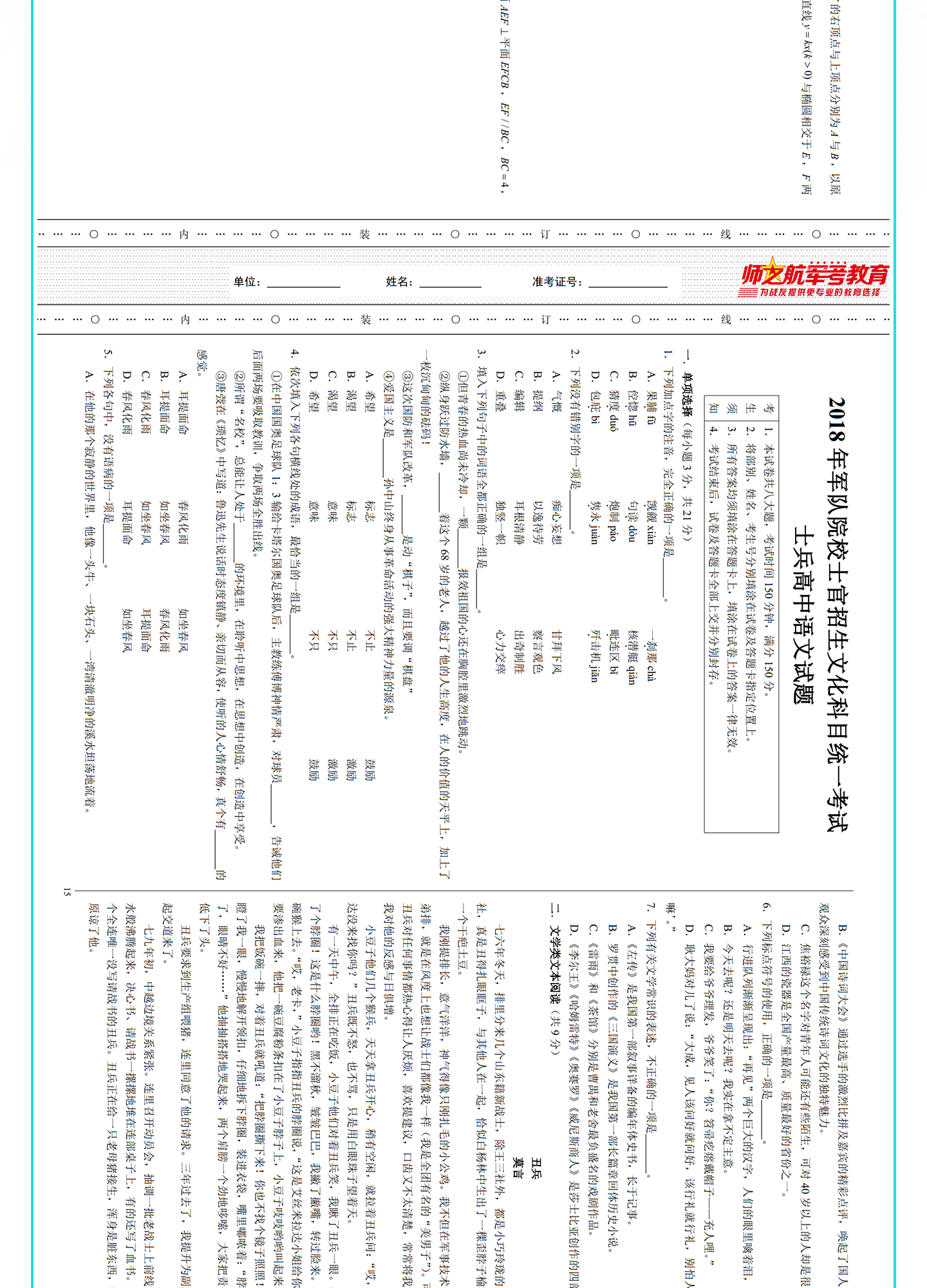 实物本科士兵提干试卷考前冲刺卷军考试卷复习资料