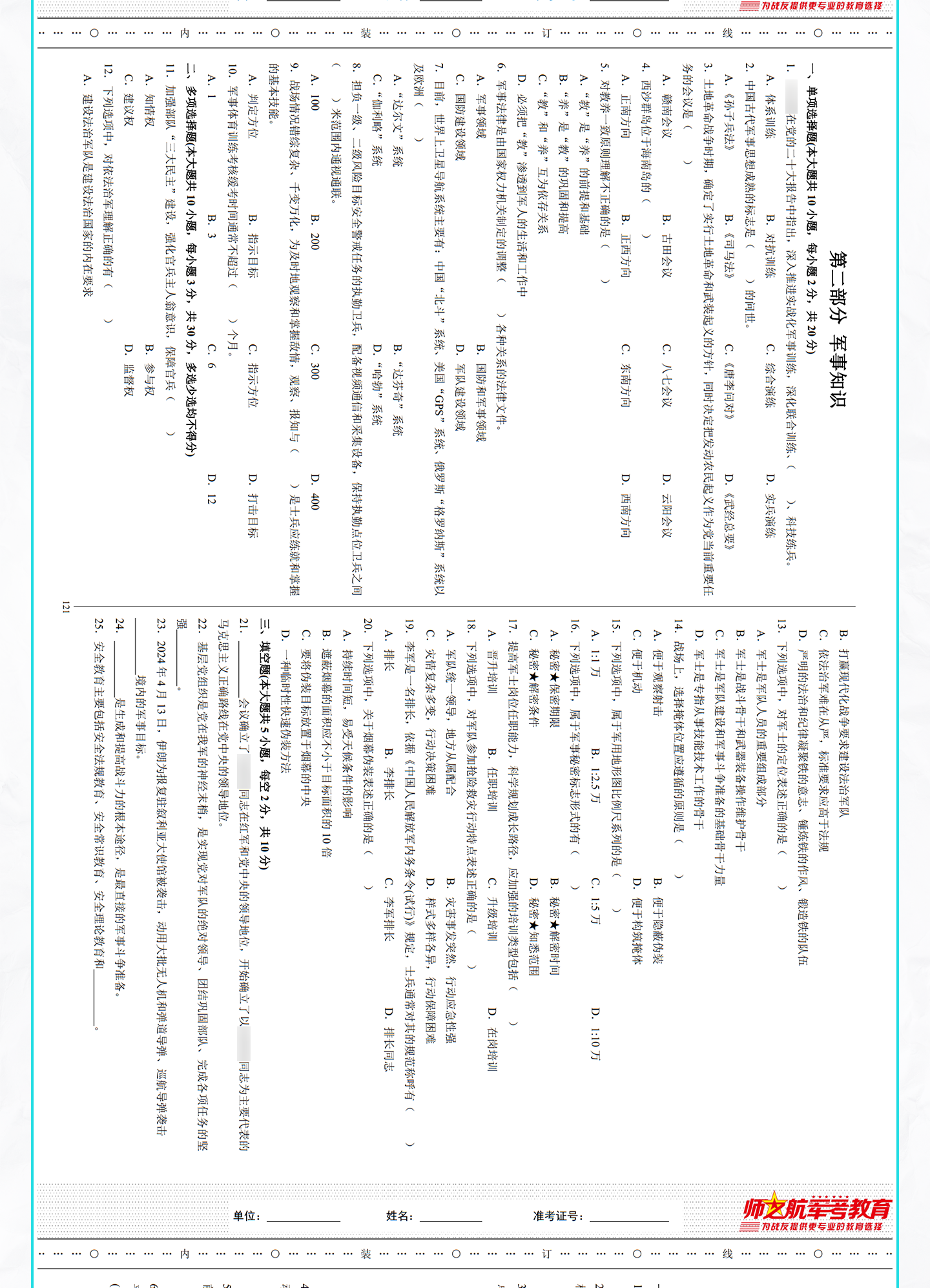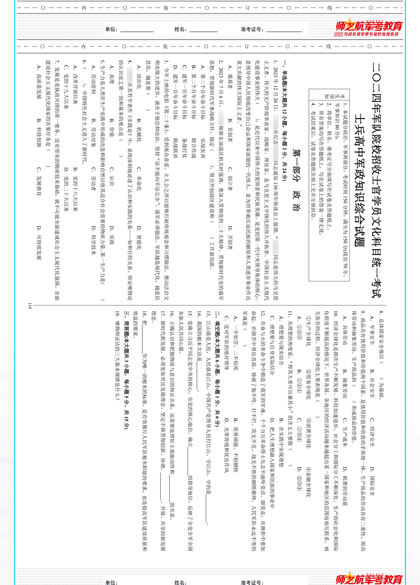 实物2026军考复习资料本科提干试卷仿真练习考士官仿真试题士兵考学仿真题试卷资料考军校仿真试卷