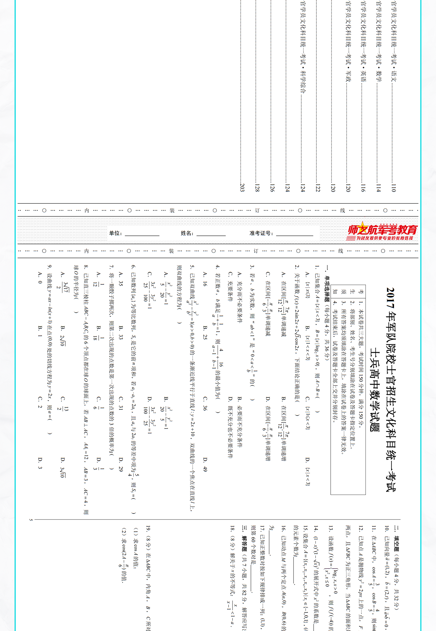 2026年考士官军考历年真题军队士官学校统考试卷军考资料-涵盖2017-2024