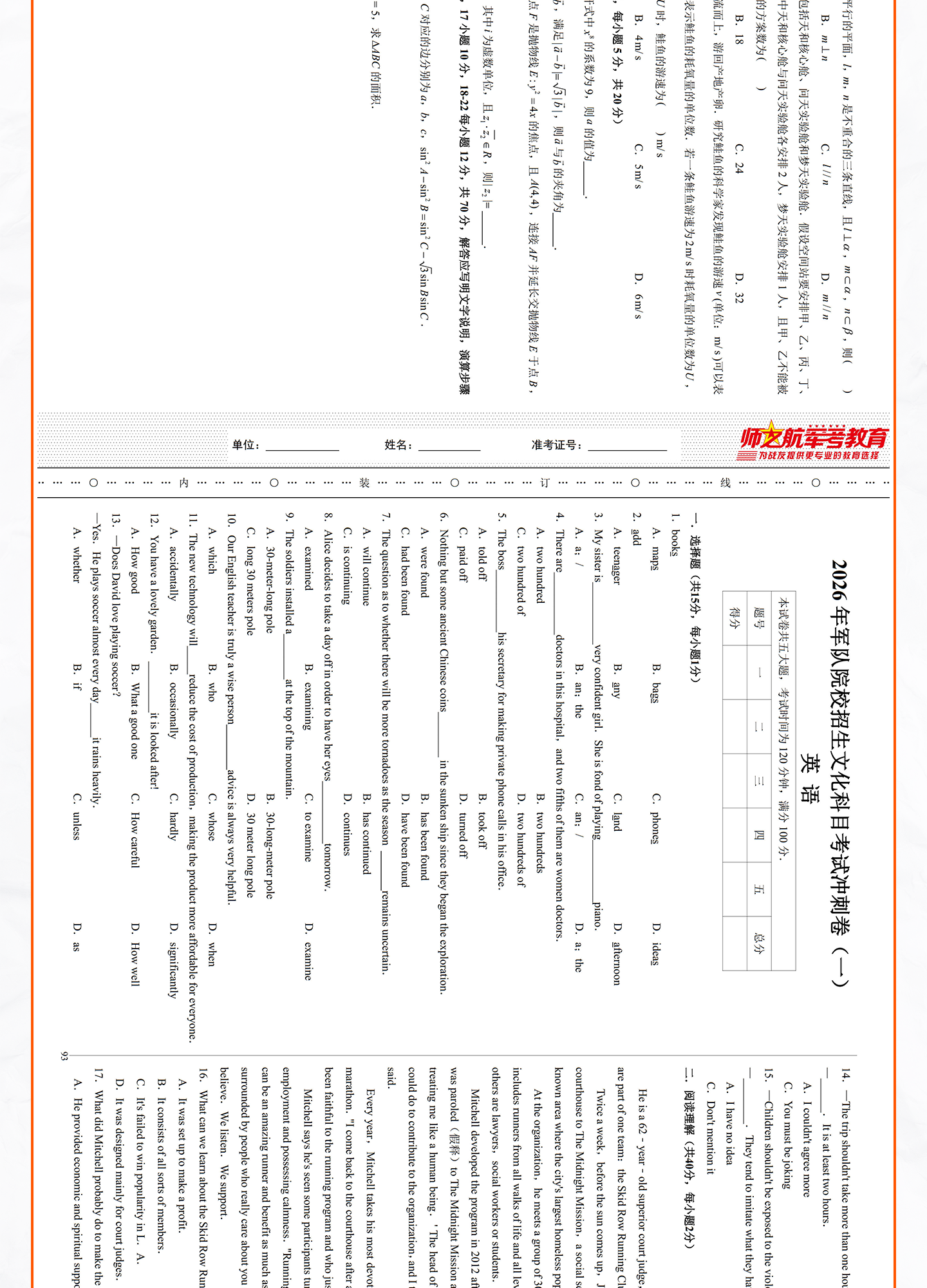 实物2026年新品考士官学校复习资料考军校书籍模拟卷仿真试卷仿真试题