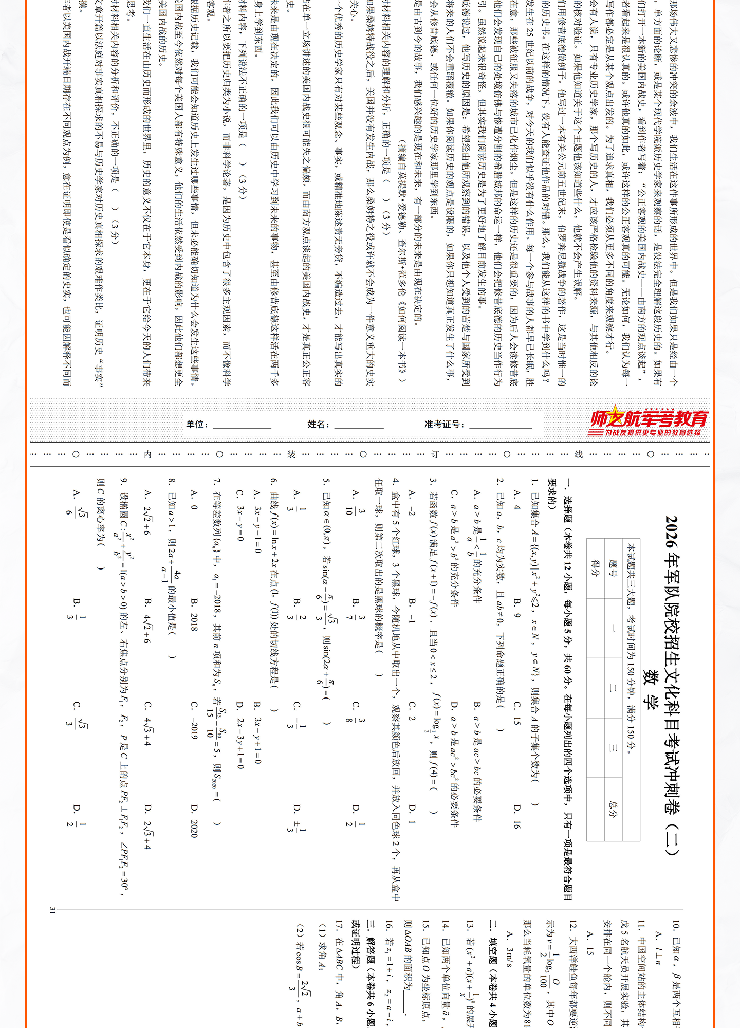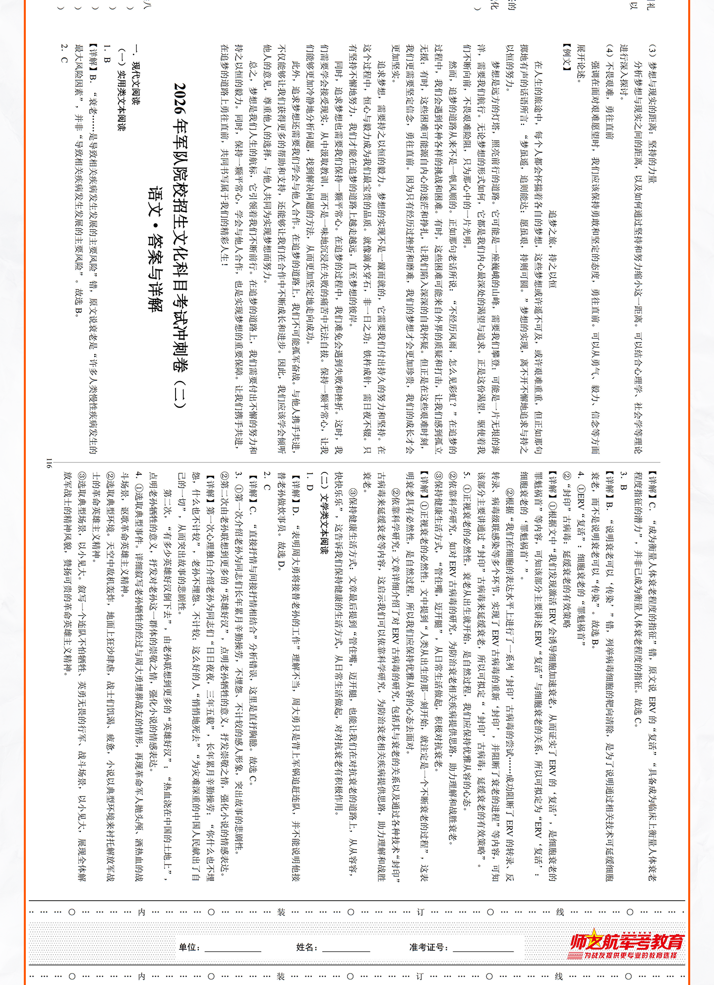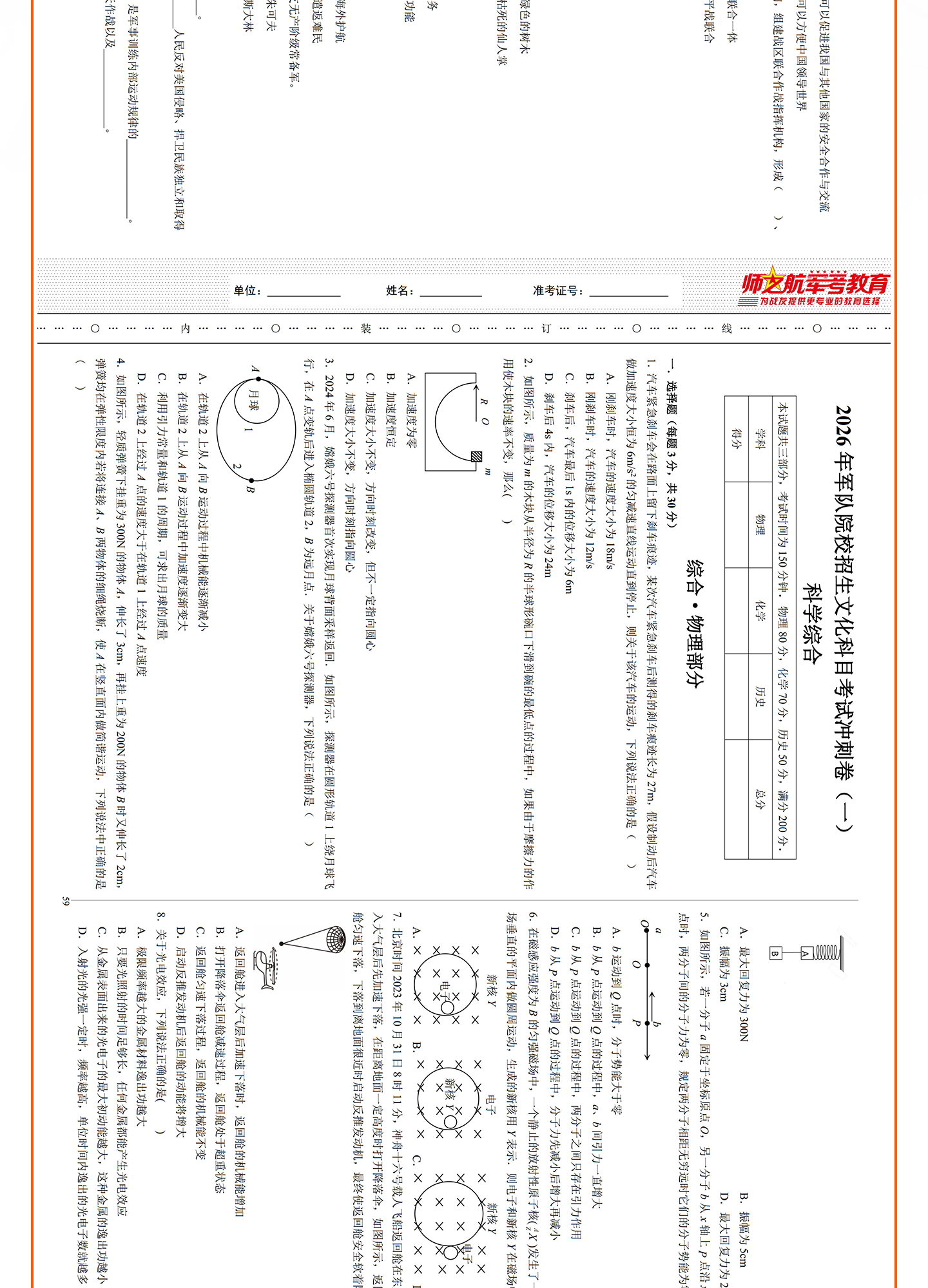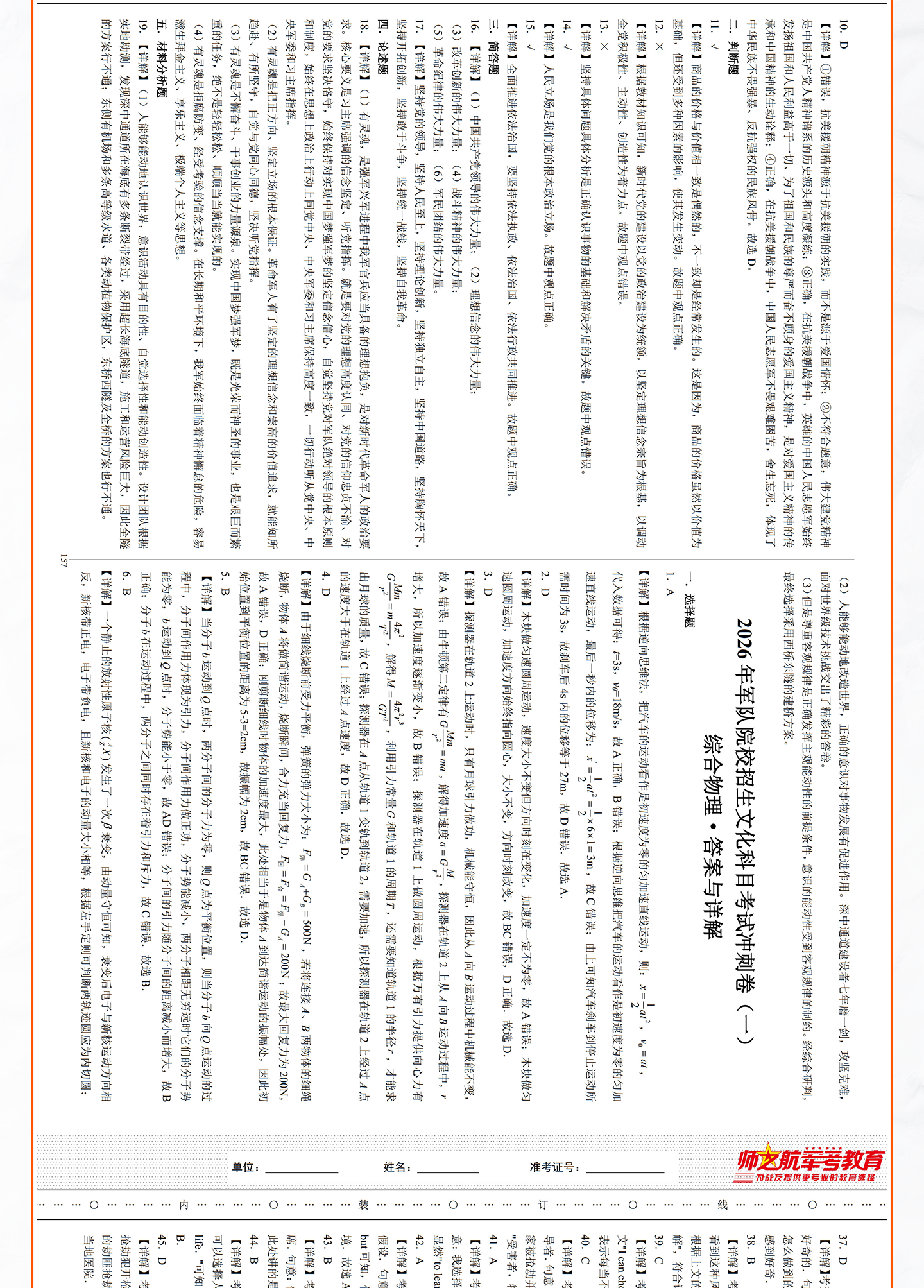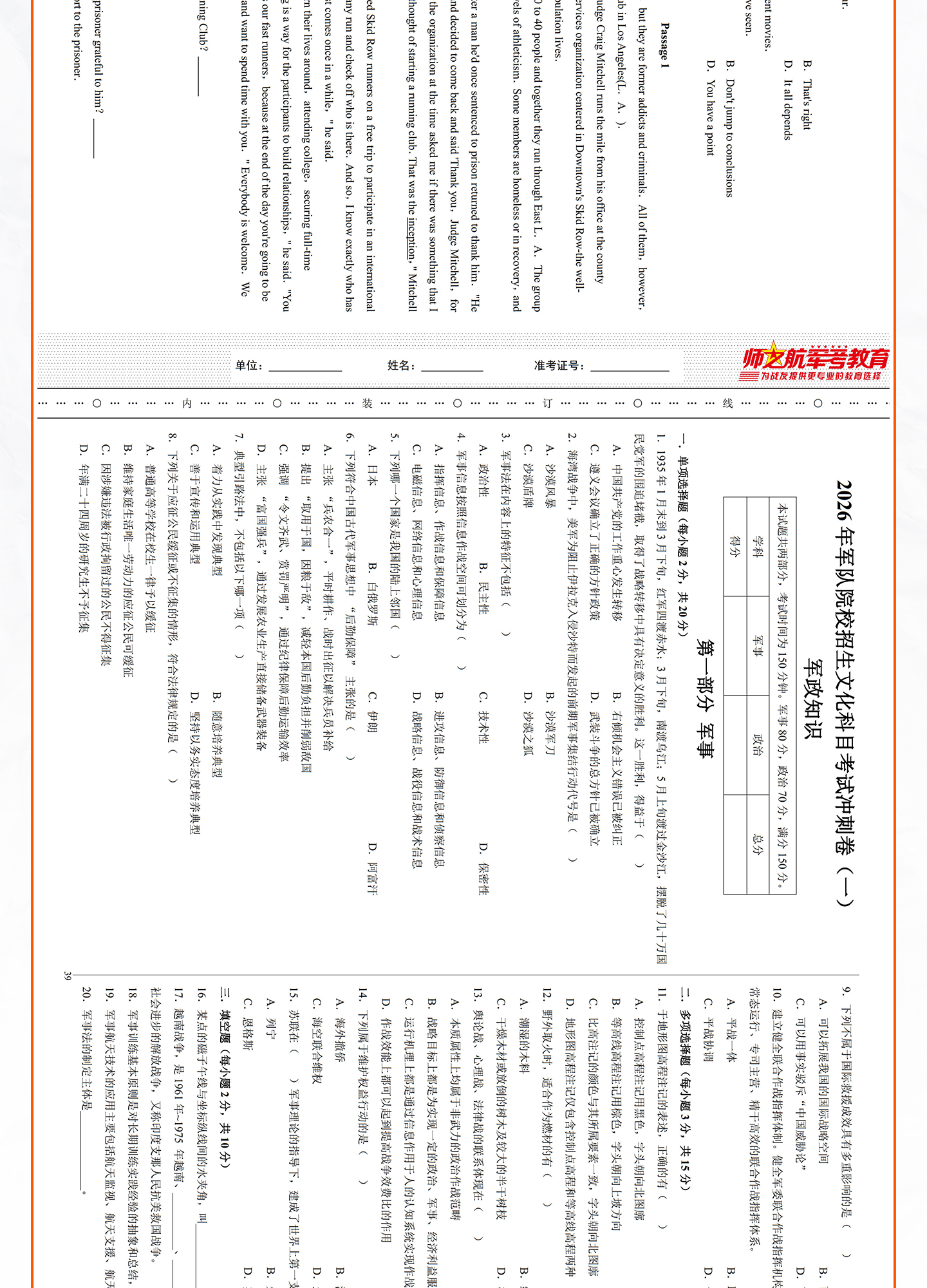 实物2026年高中士兵考军校阶段性测验练习考军官阶段卷