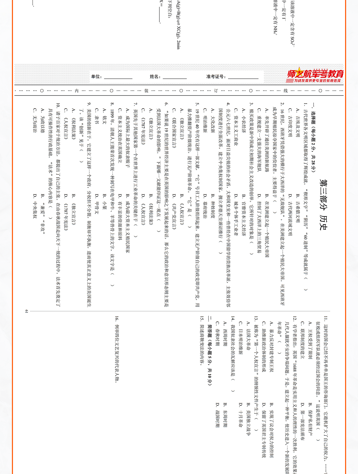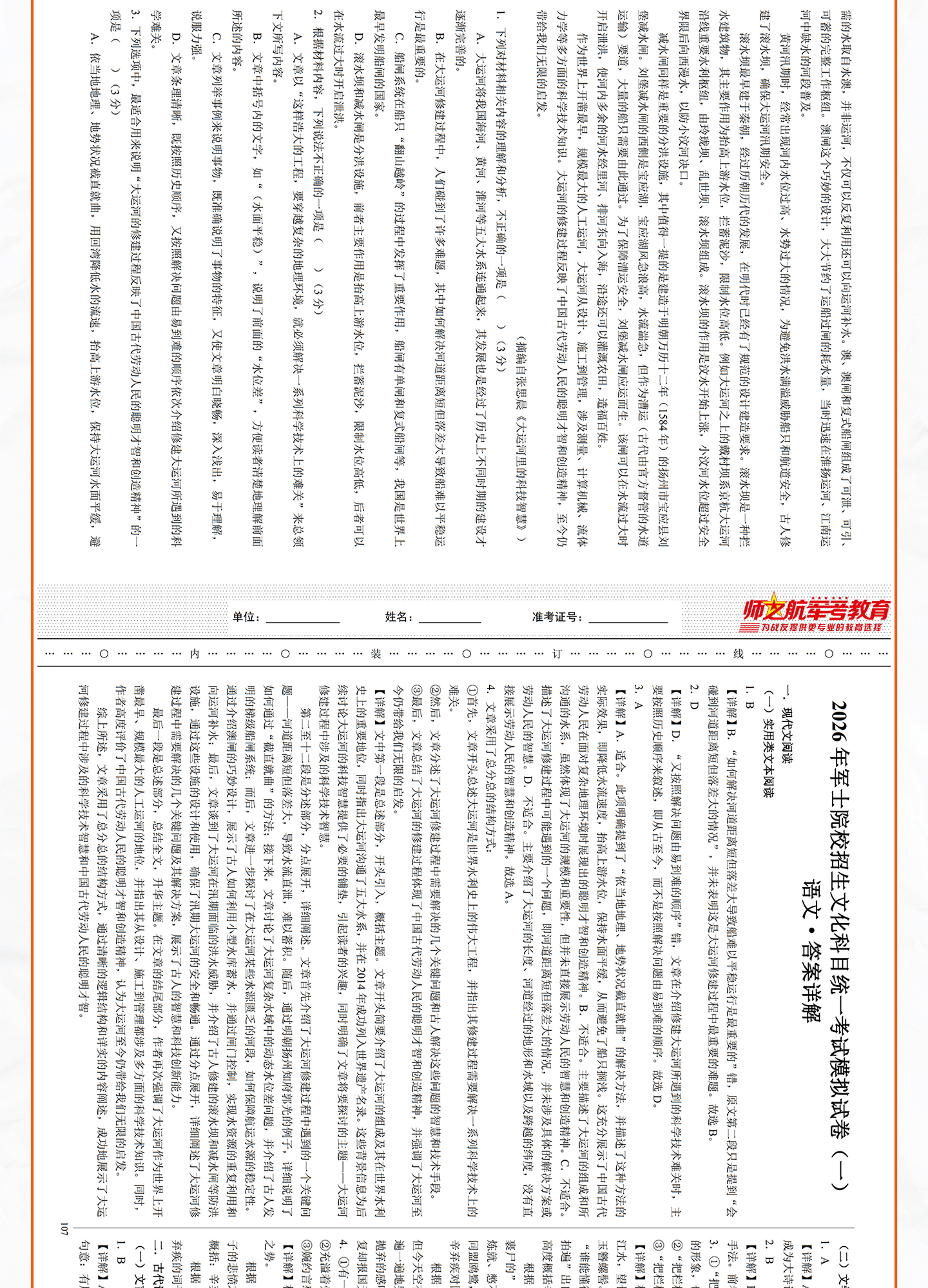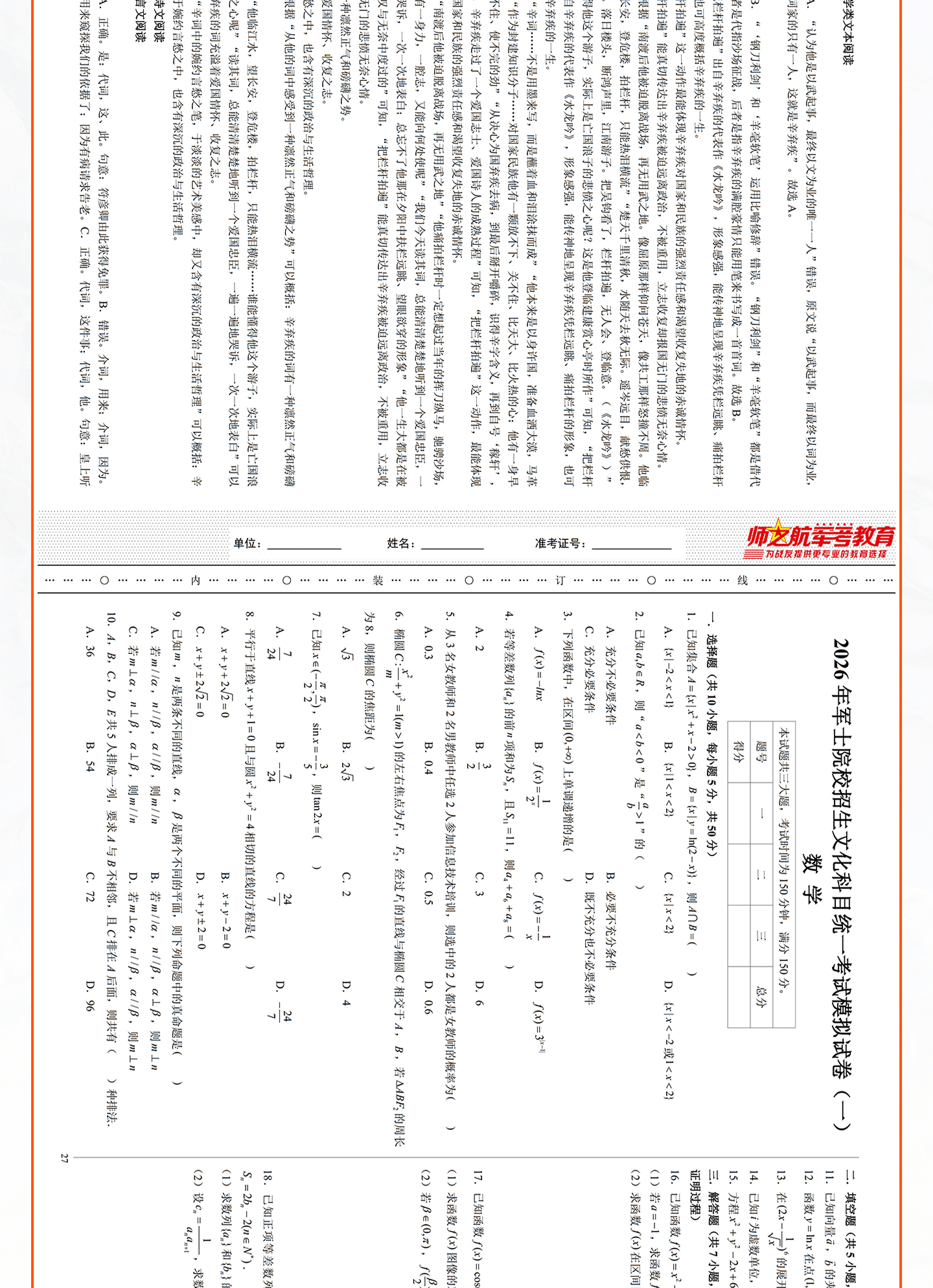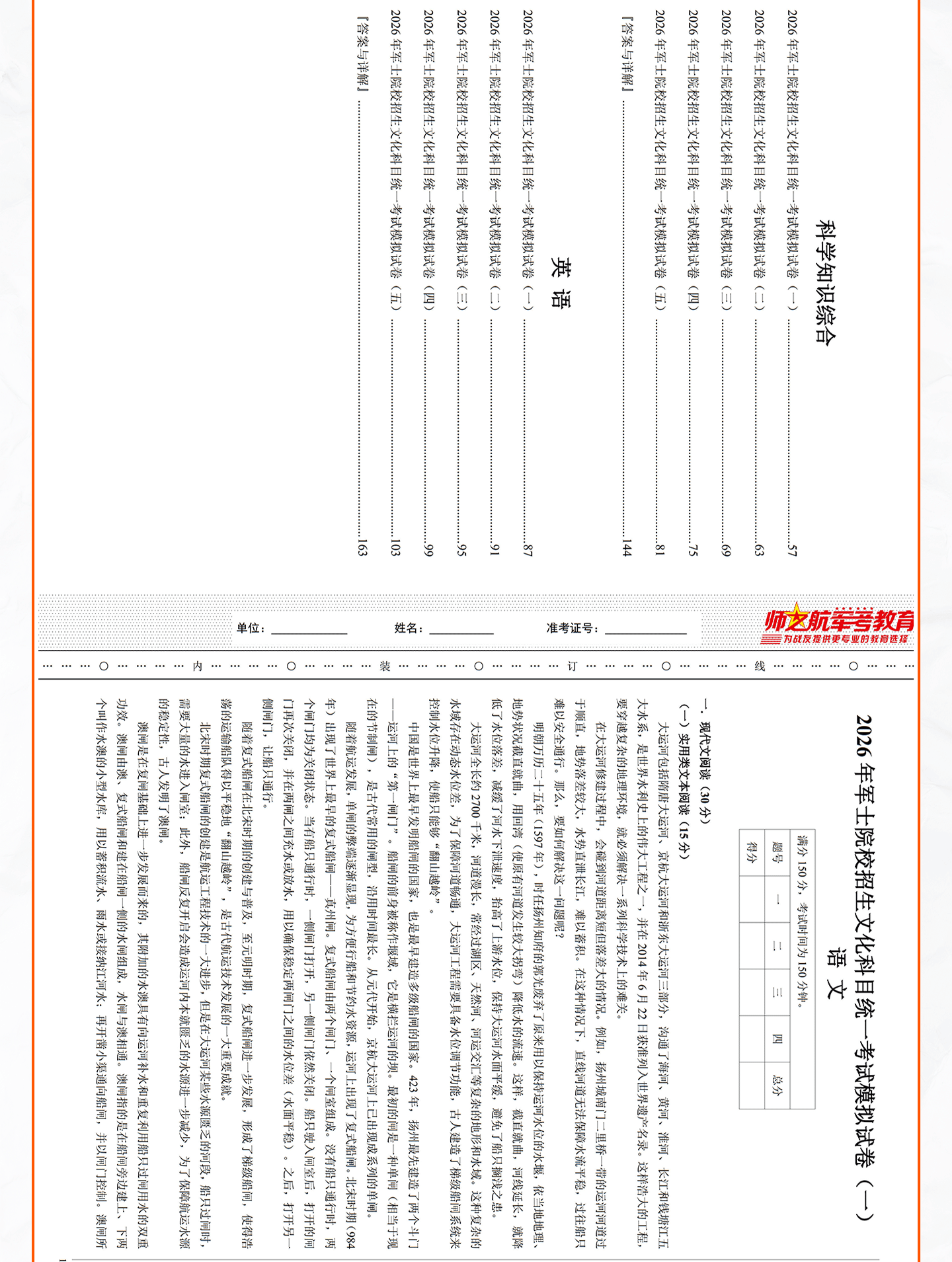 实物2026士兵军士专升本复习军考仿真试卷仿真练习模拟试题