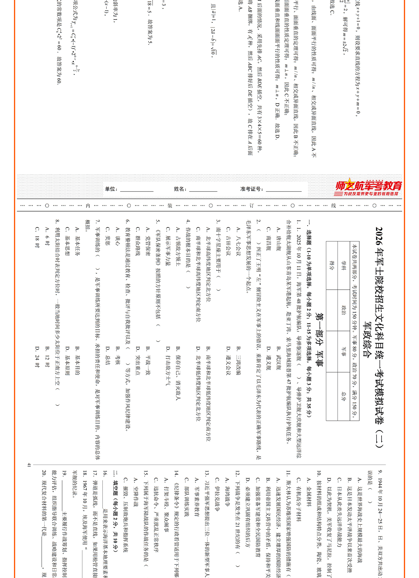 2026年新品考士官学校复习资料考军校书籍模拟卷仿真试卷仿真试题