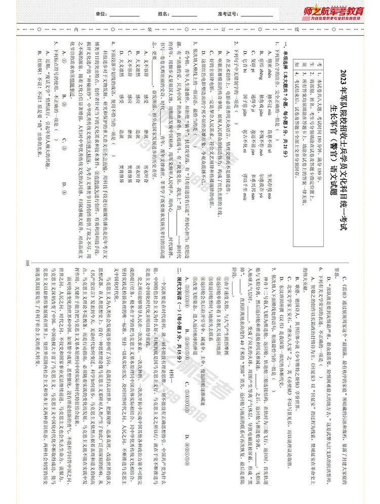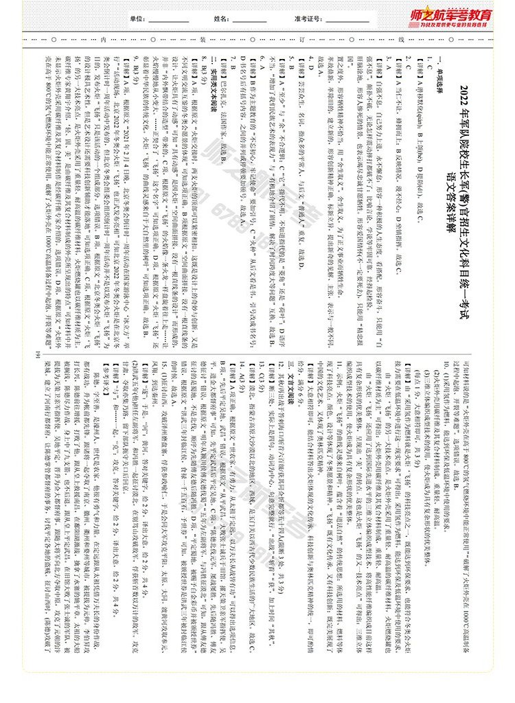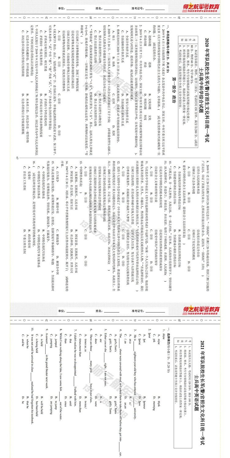 实物军士专升本考军校考前冲刺卷军考试卷复习资料(全套)