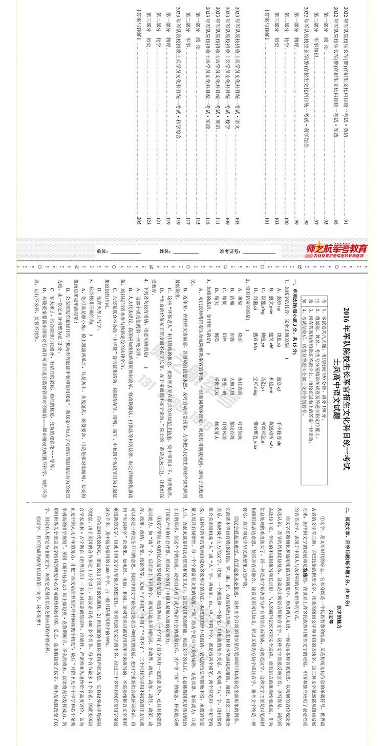 2026年考军校军考历年真题高中考军校试卷资料-涵盖2016-2024