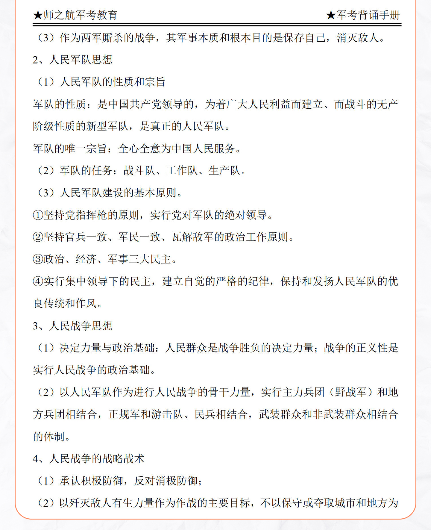 2026年考士官学校八科背诵记忆基础知识要点总结士官军士背诵手册