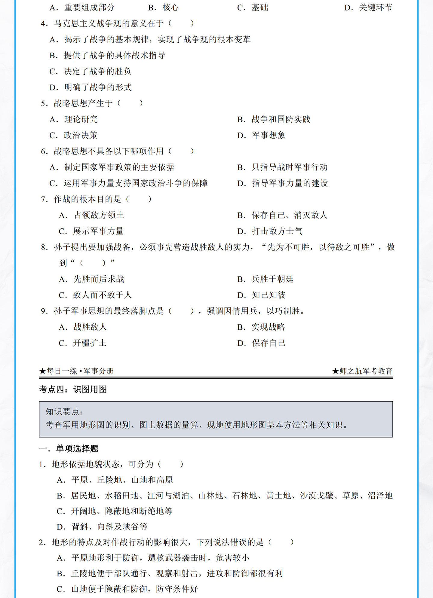 2026年考士官学校训练题集士官仿真试题考军士课课练每日一练