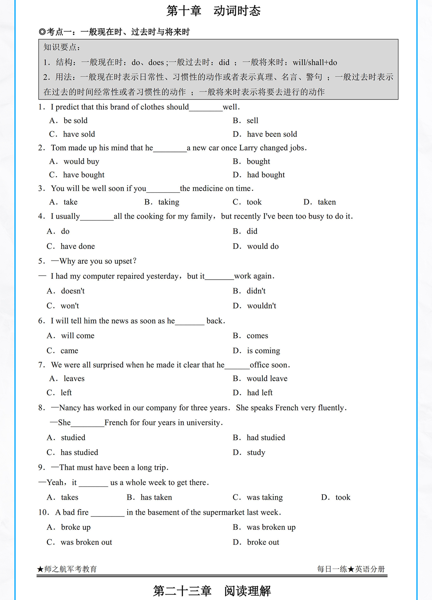 实物2026部队战士军考英语资料士兵考军校复习语法必考题型练习