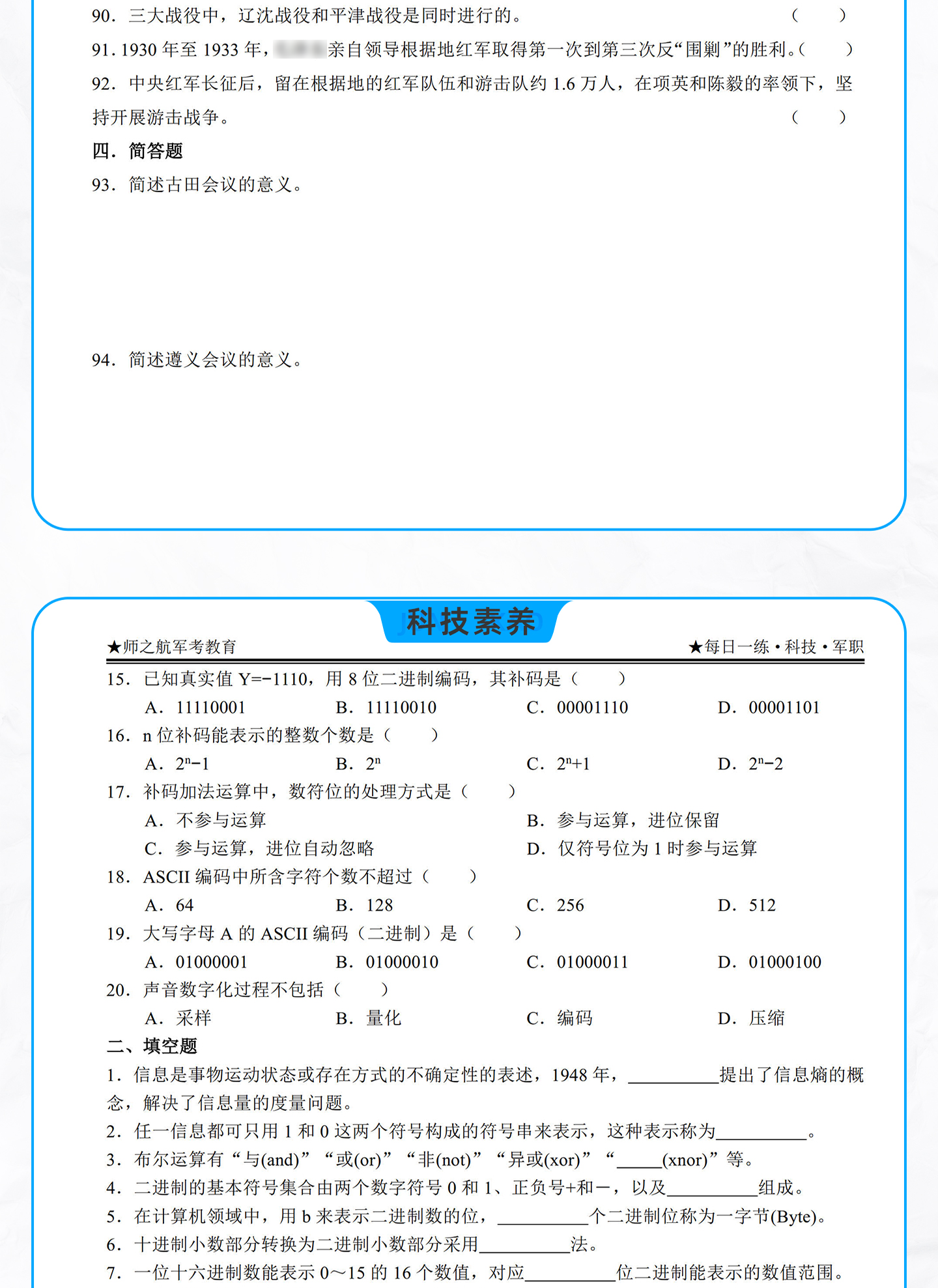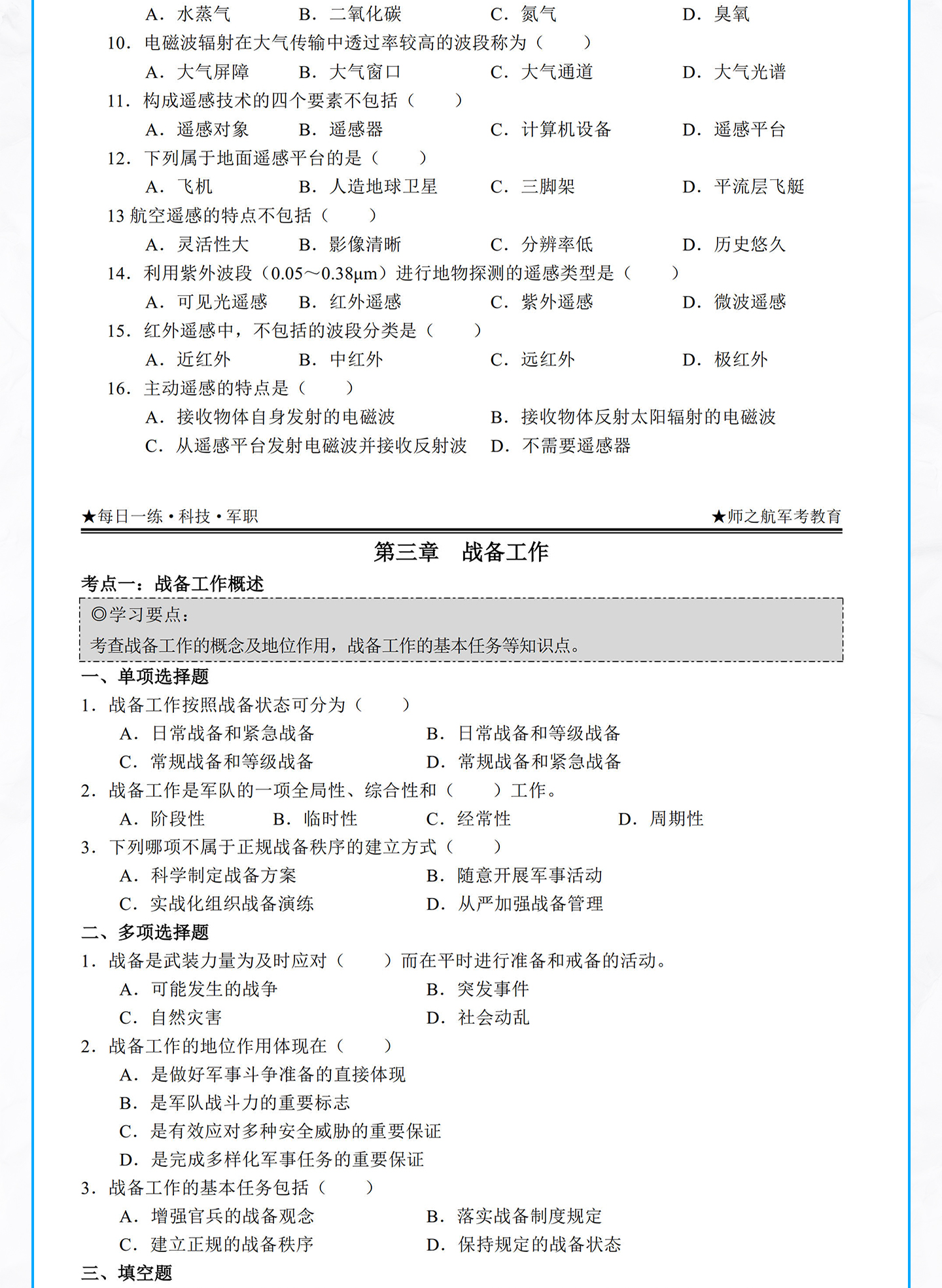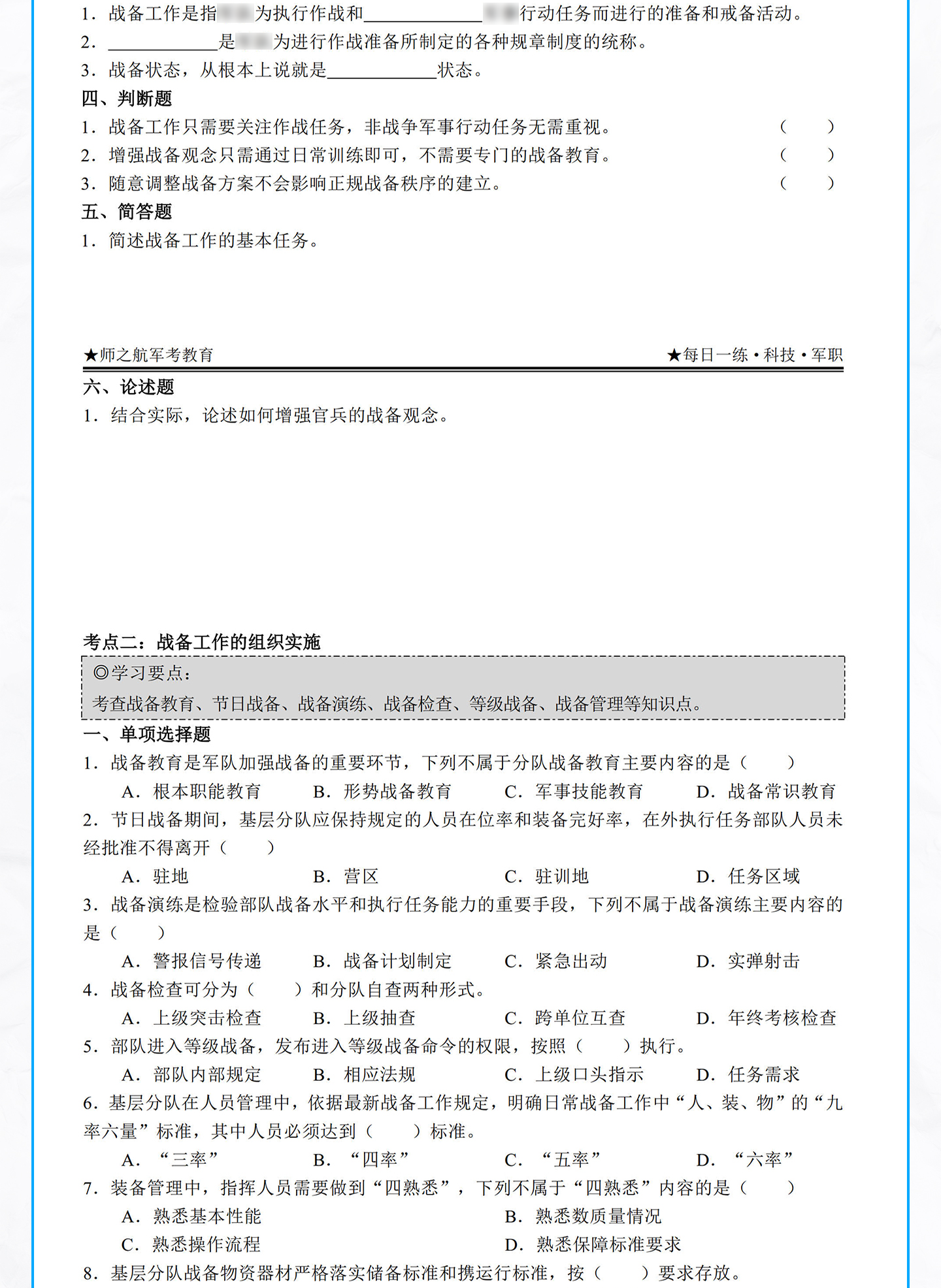 2026年军考士兵本科提干资料每日一练军考教材材料试题新版