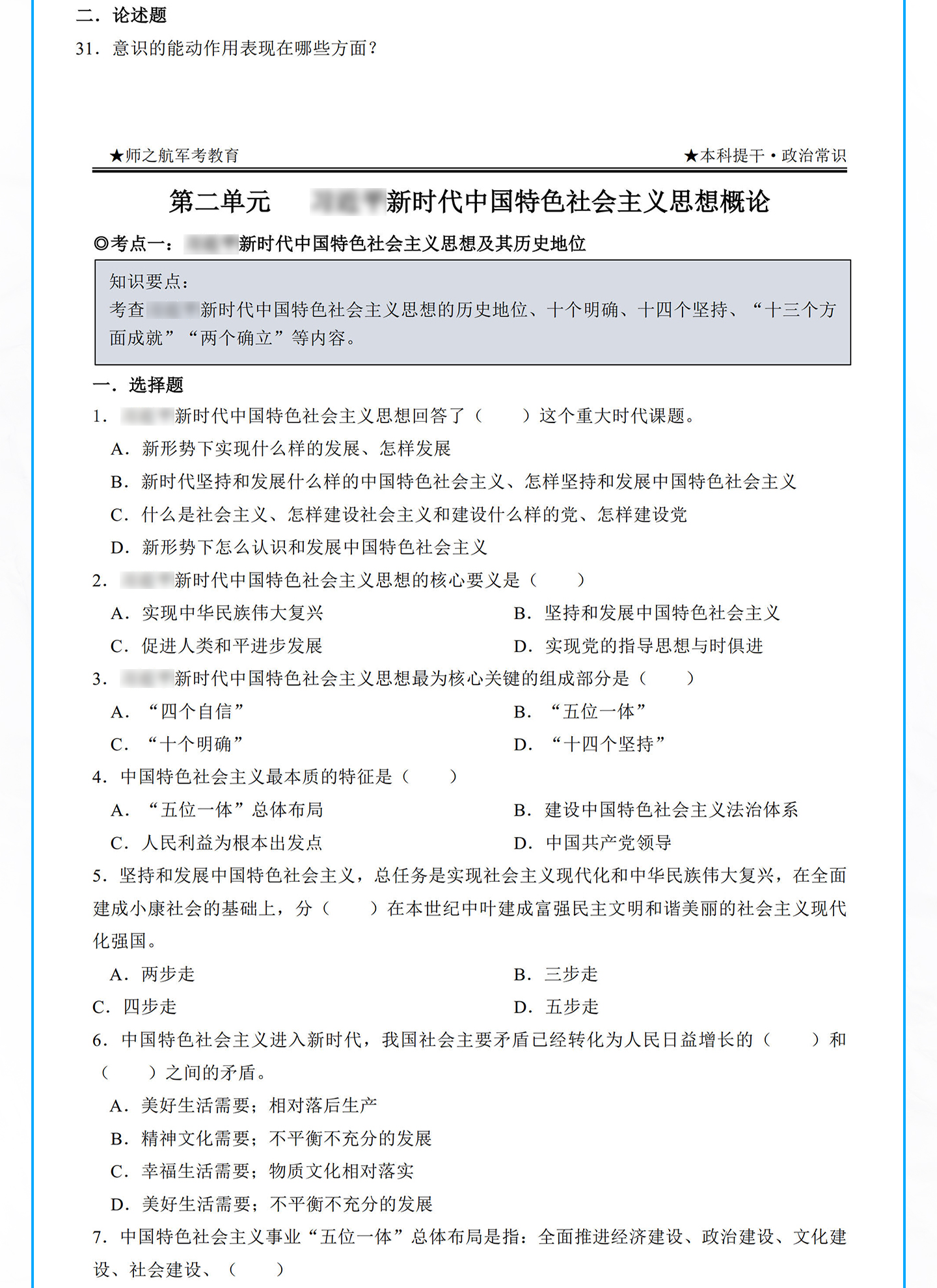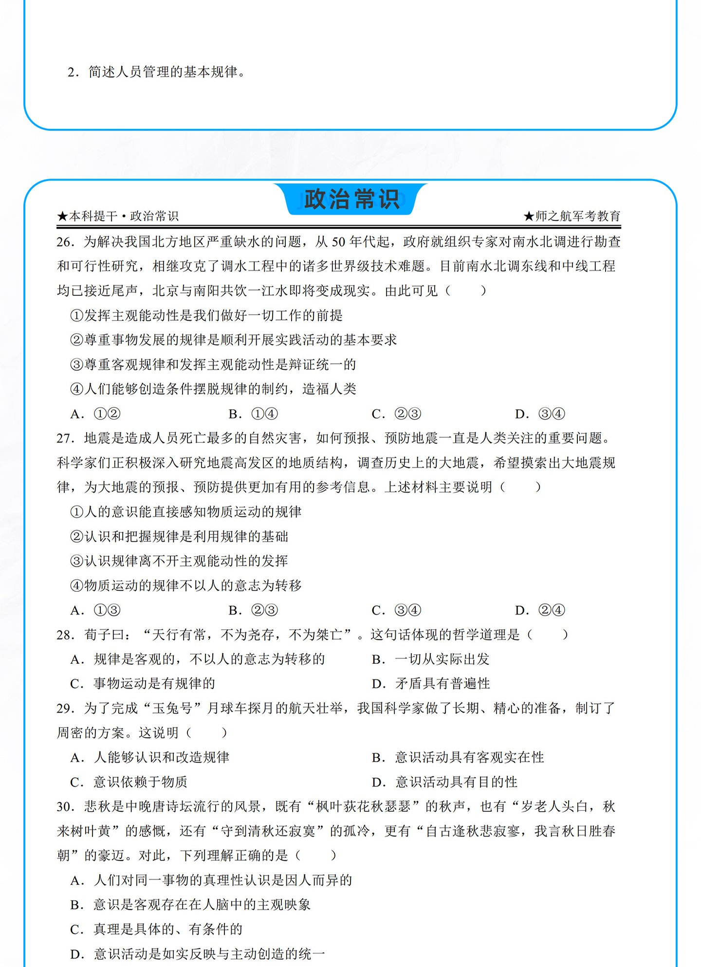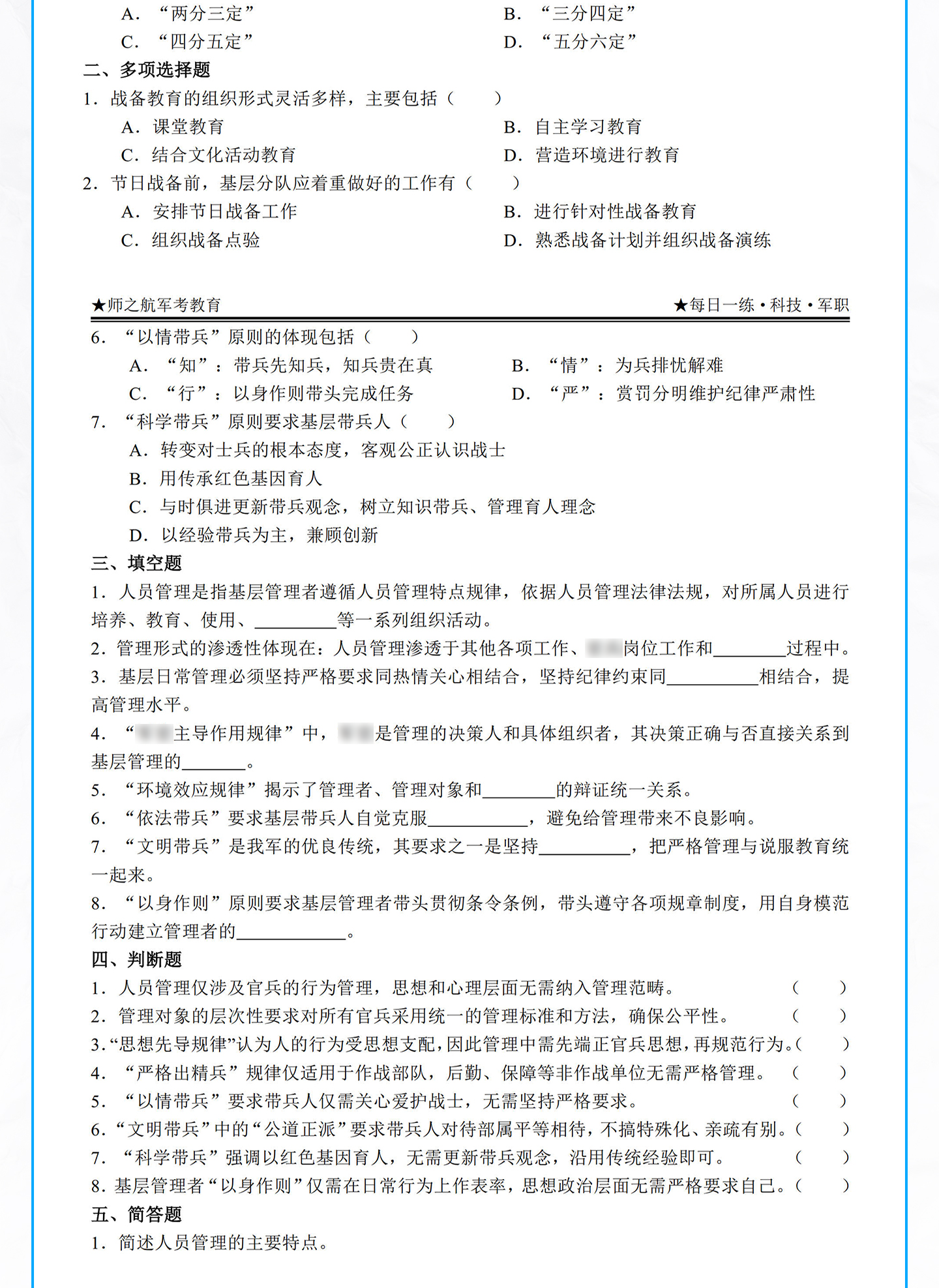2026年军考士兵本科提干资料每日一练军考教材材料试题新版