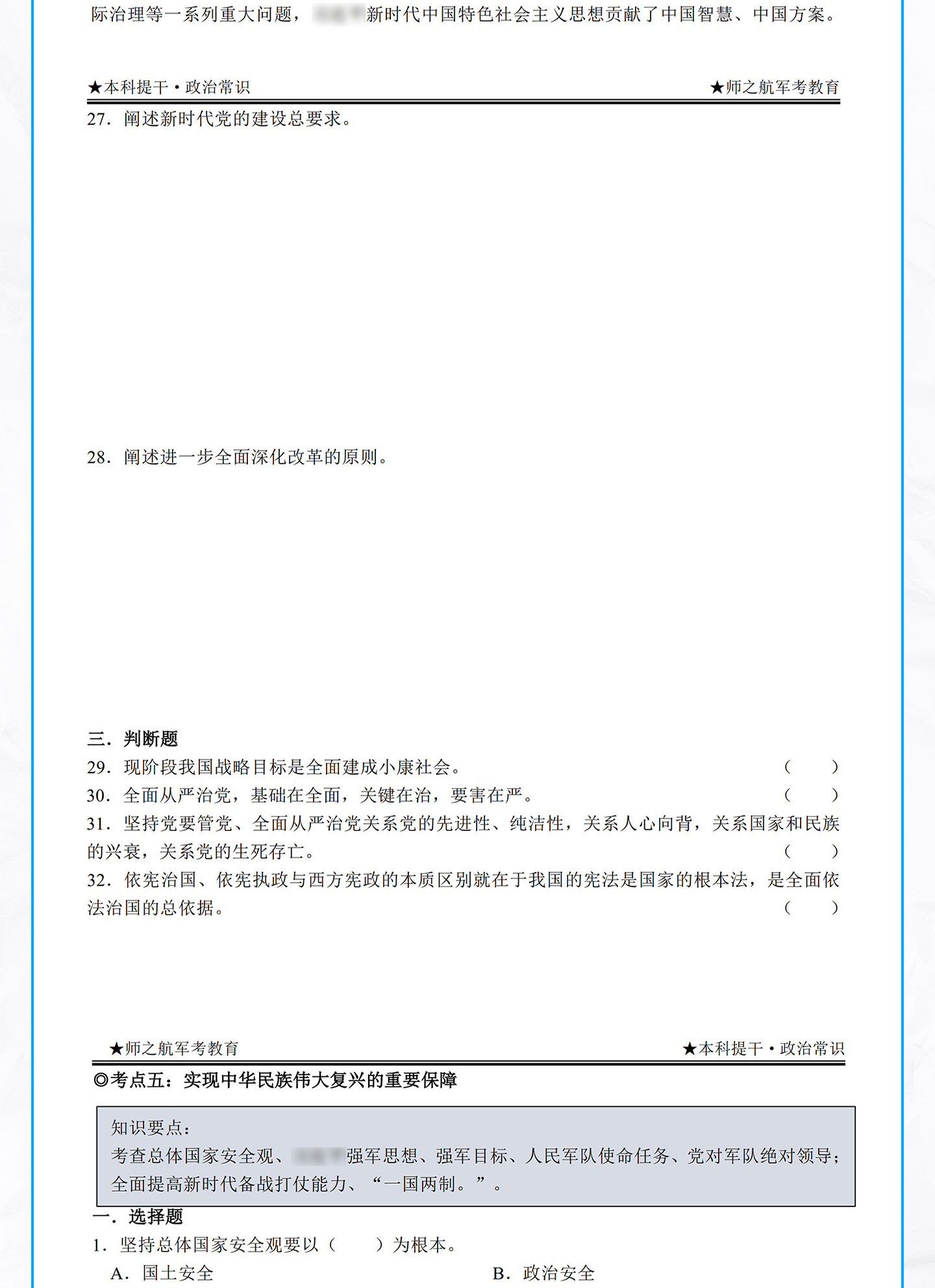 实物2026年军考资料!本科提干复习资料