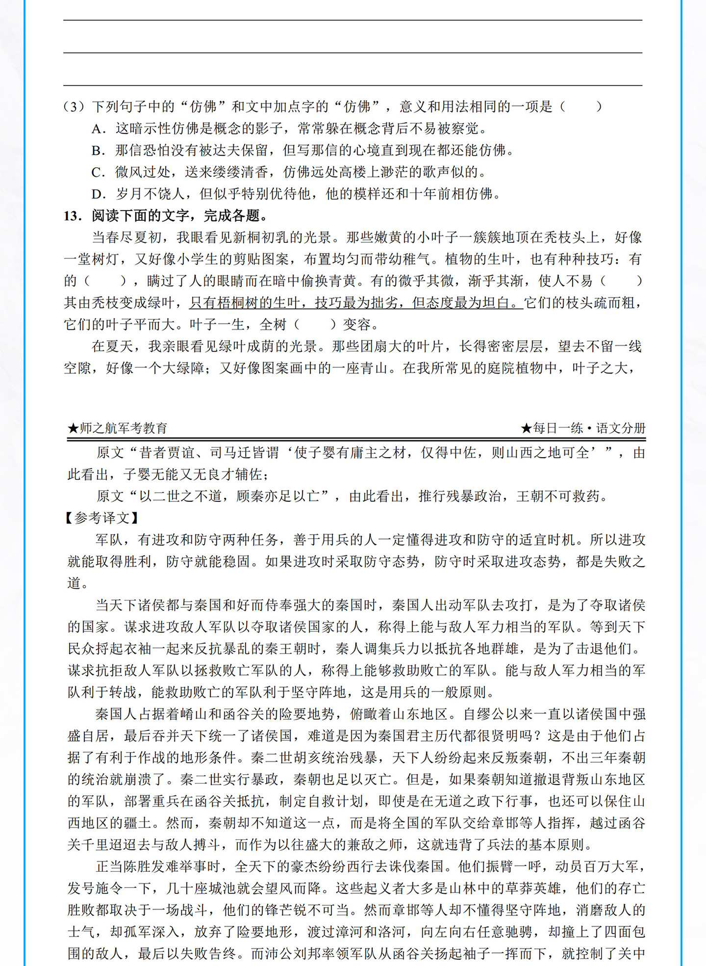 实物本科士兵提干试卷考前冲刺卷军考试卷复习资料