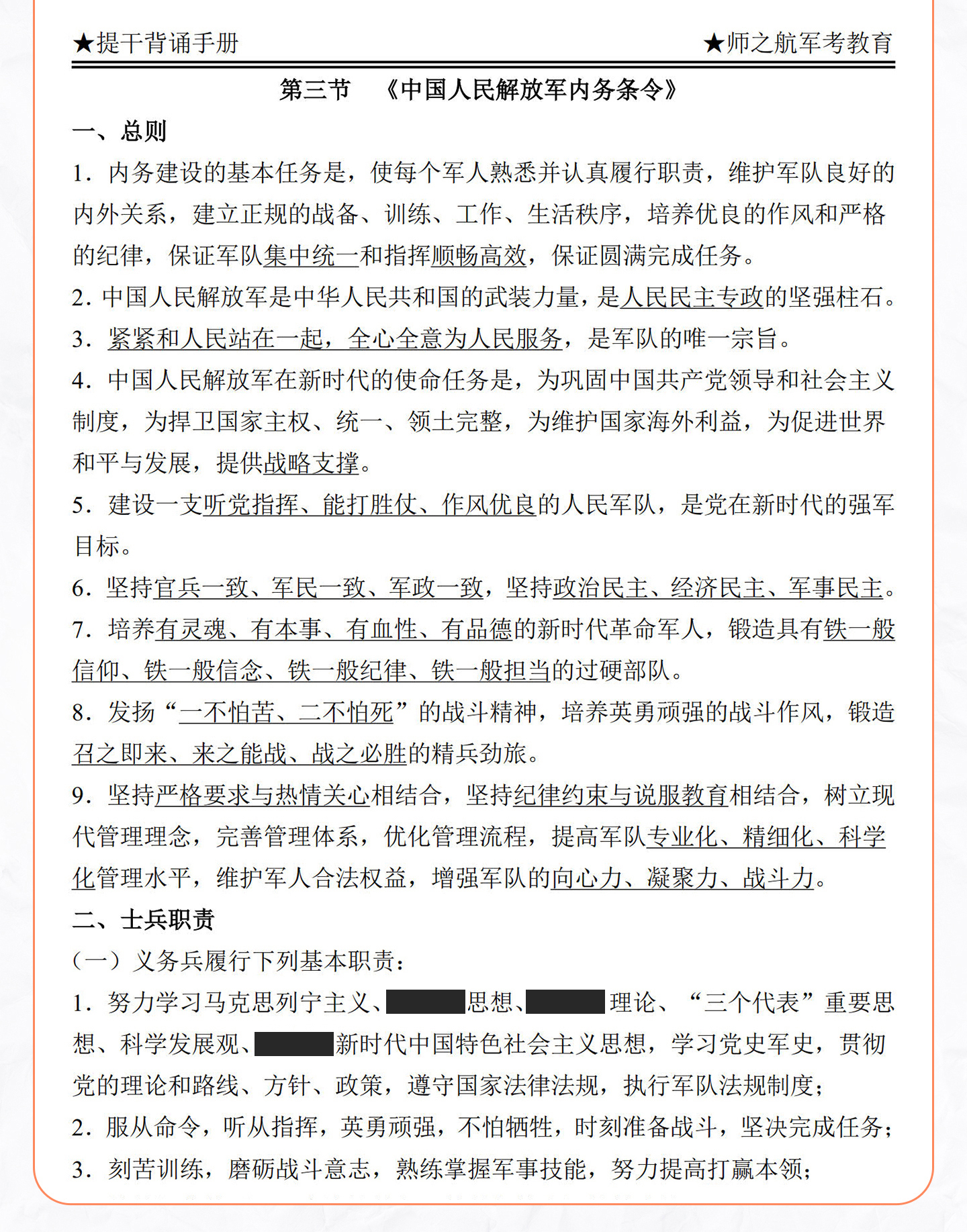 实物考军官/考士官学校/提干/专升本必考模块条令条例精选题库