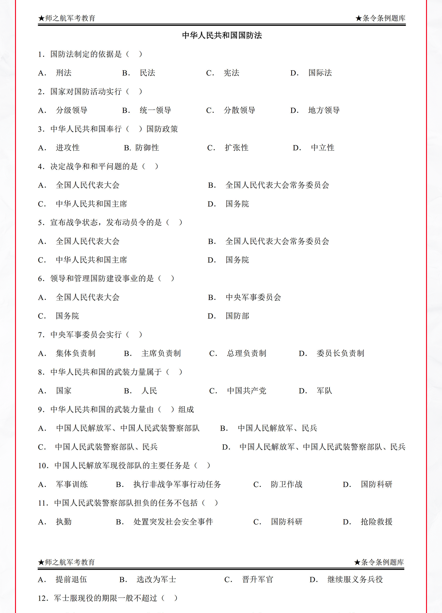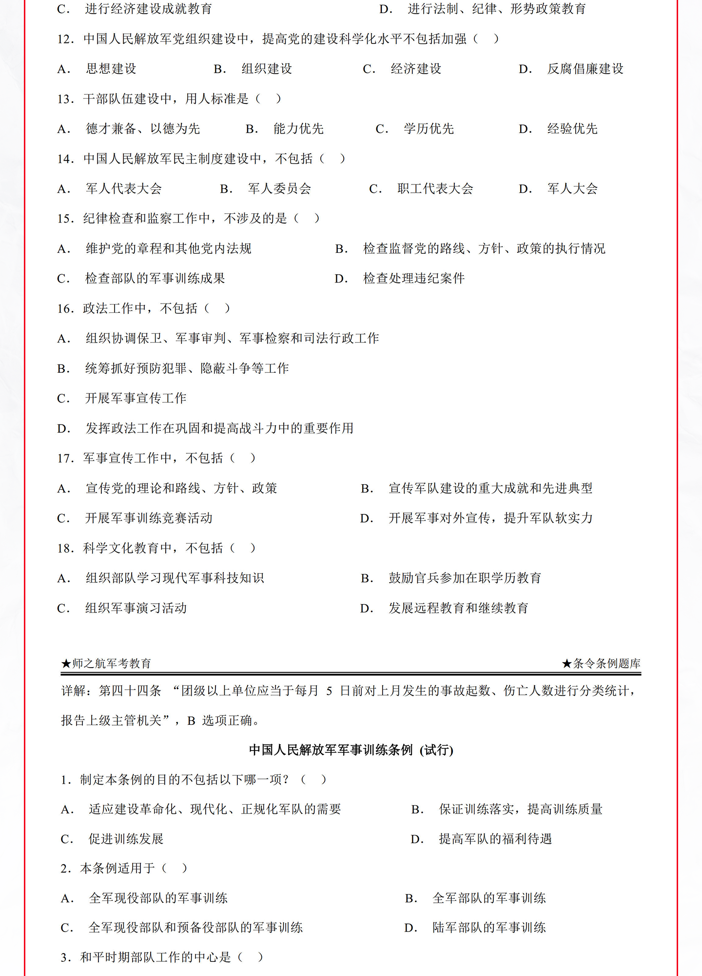军事条令条例题库 纪律条令 内务条令 队例条令 已售 143 不包邮