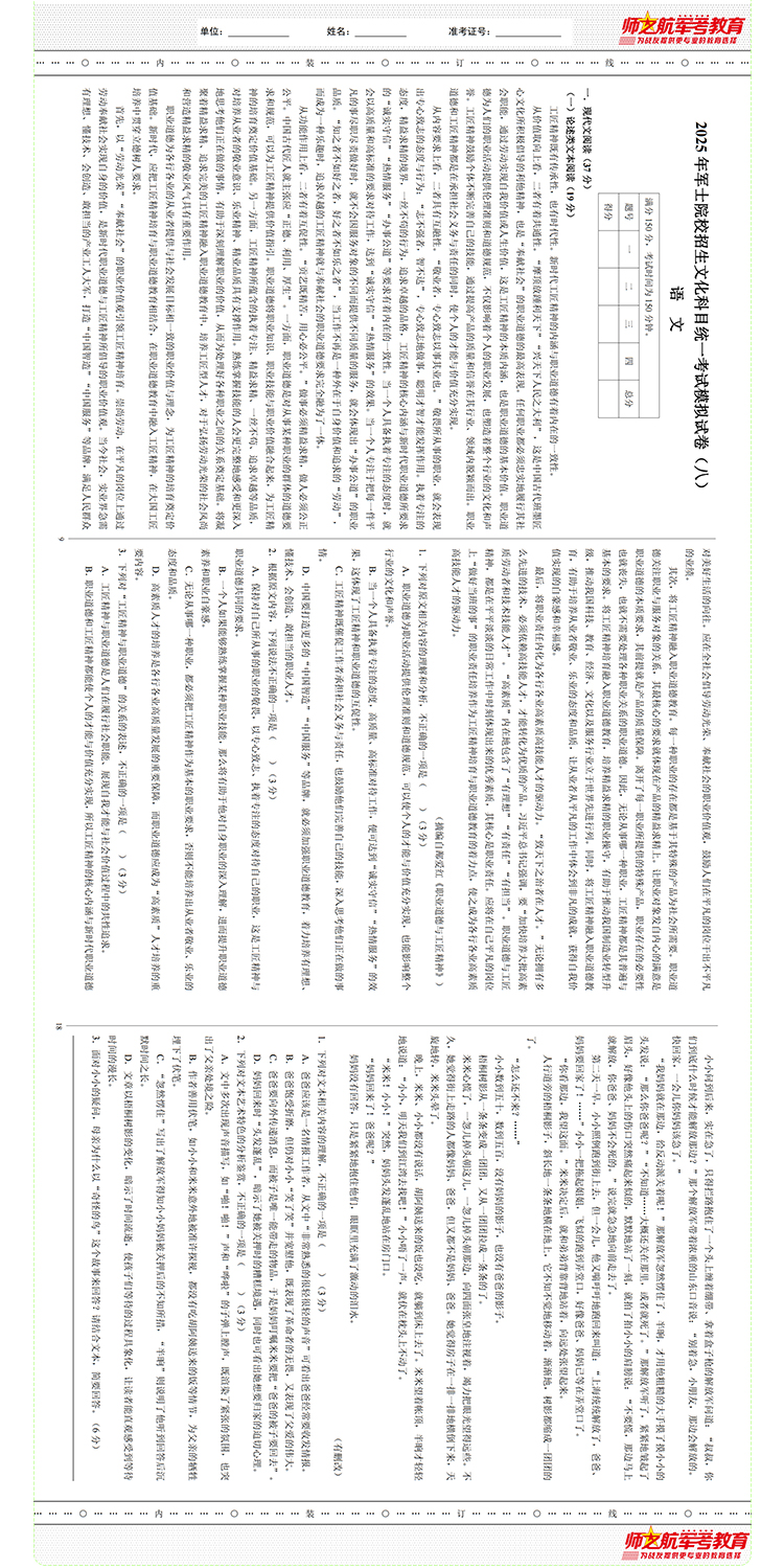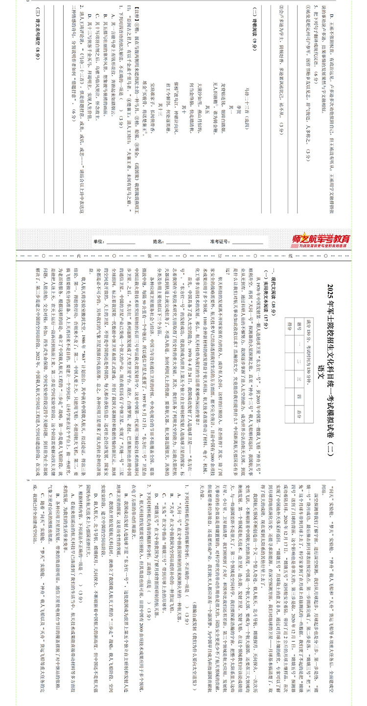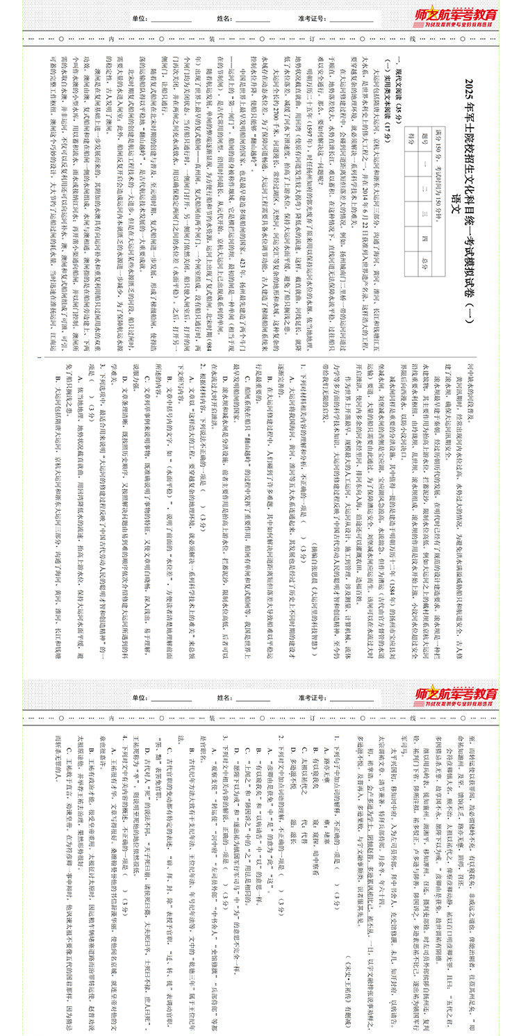 实物2025士兵军士专升本复习军考仿真试卷仿真练习模拟试题