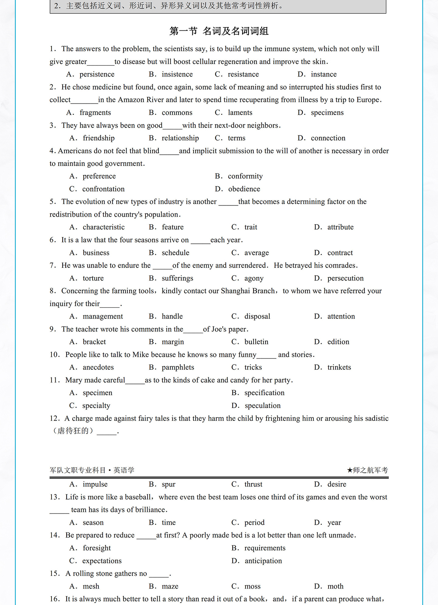 实物军士专升本考军校考前冲刺卷军考试卷复习资料(全套)