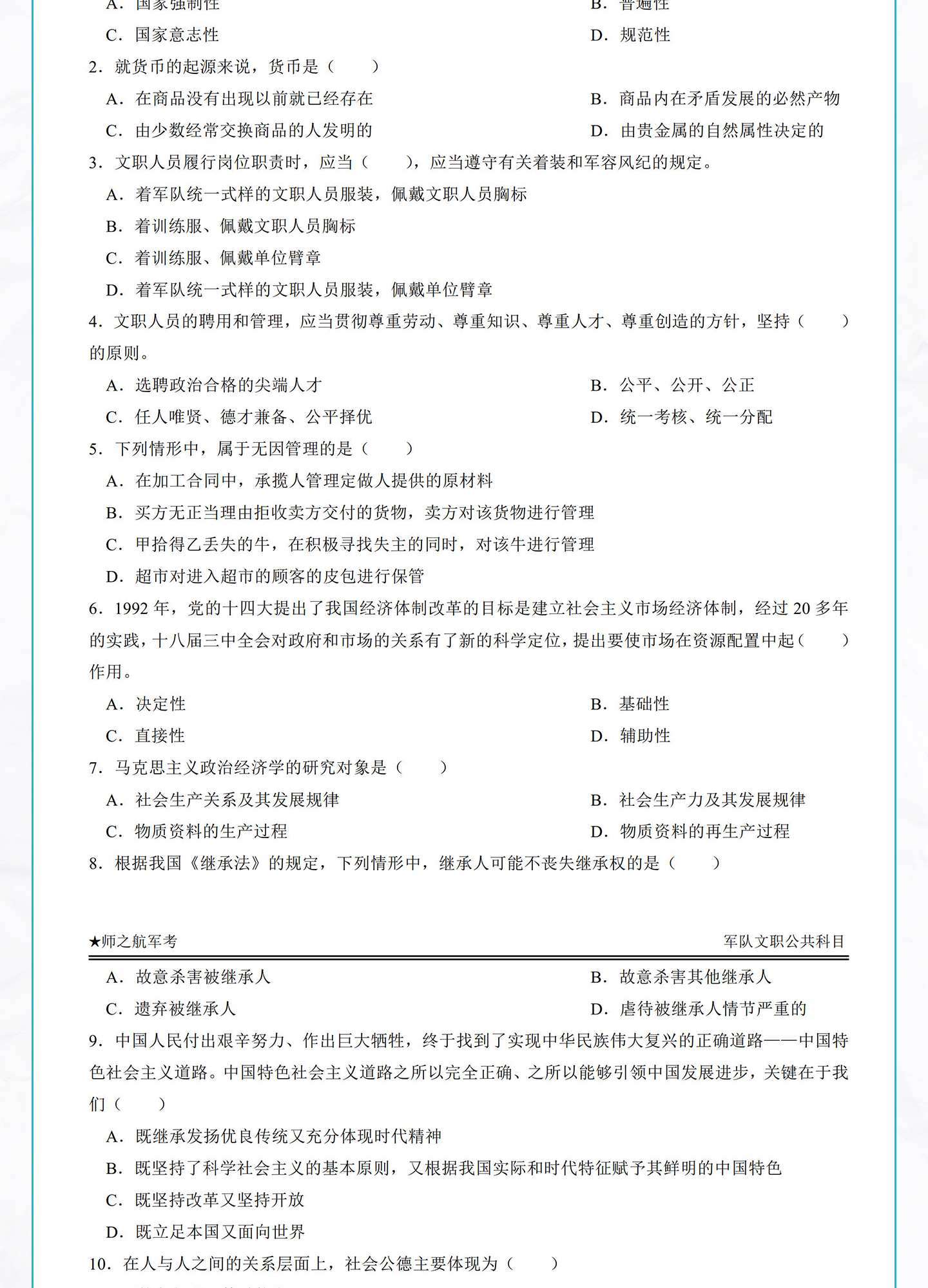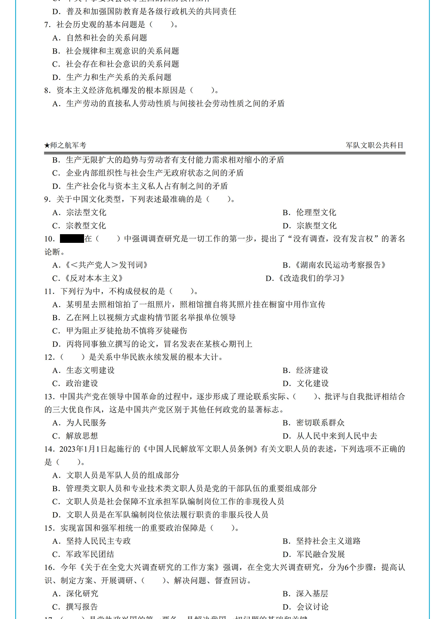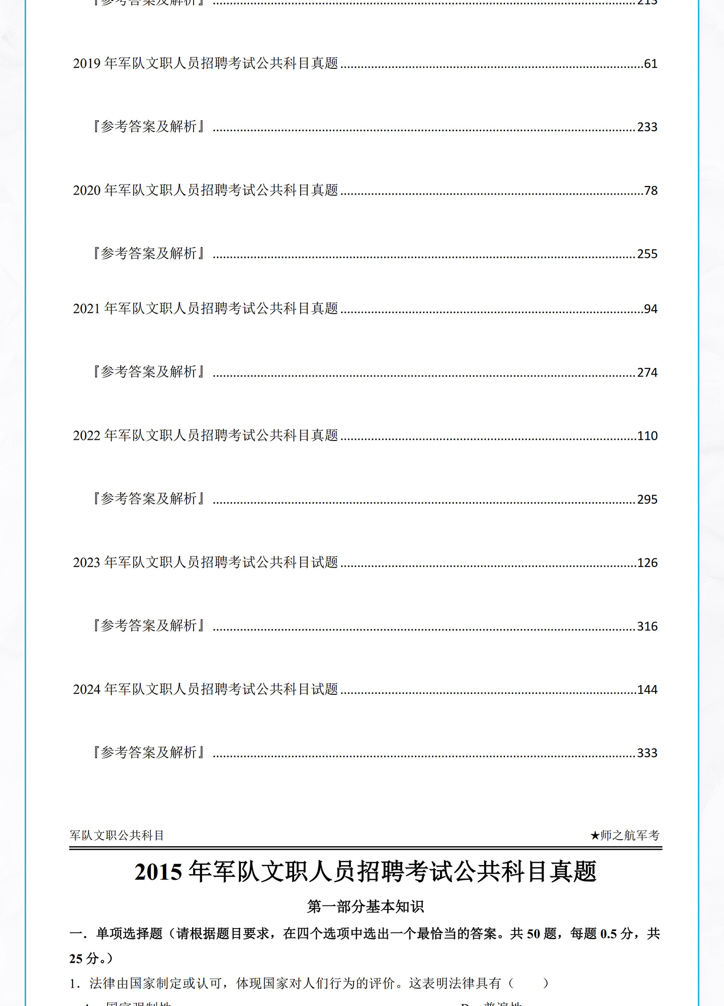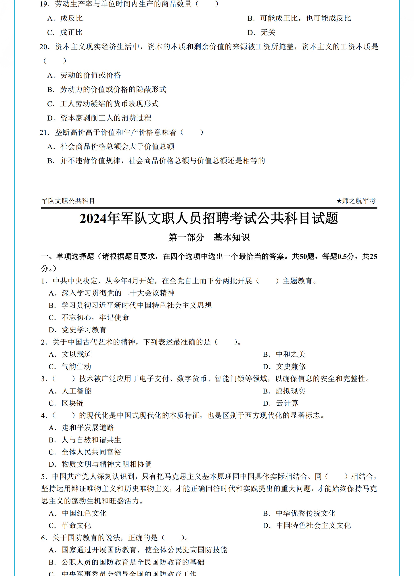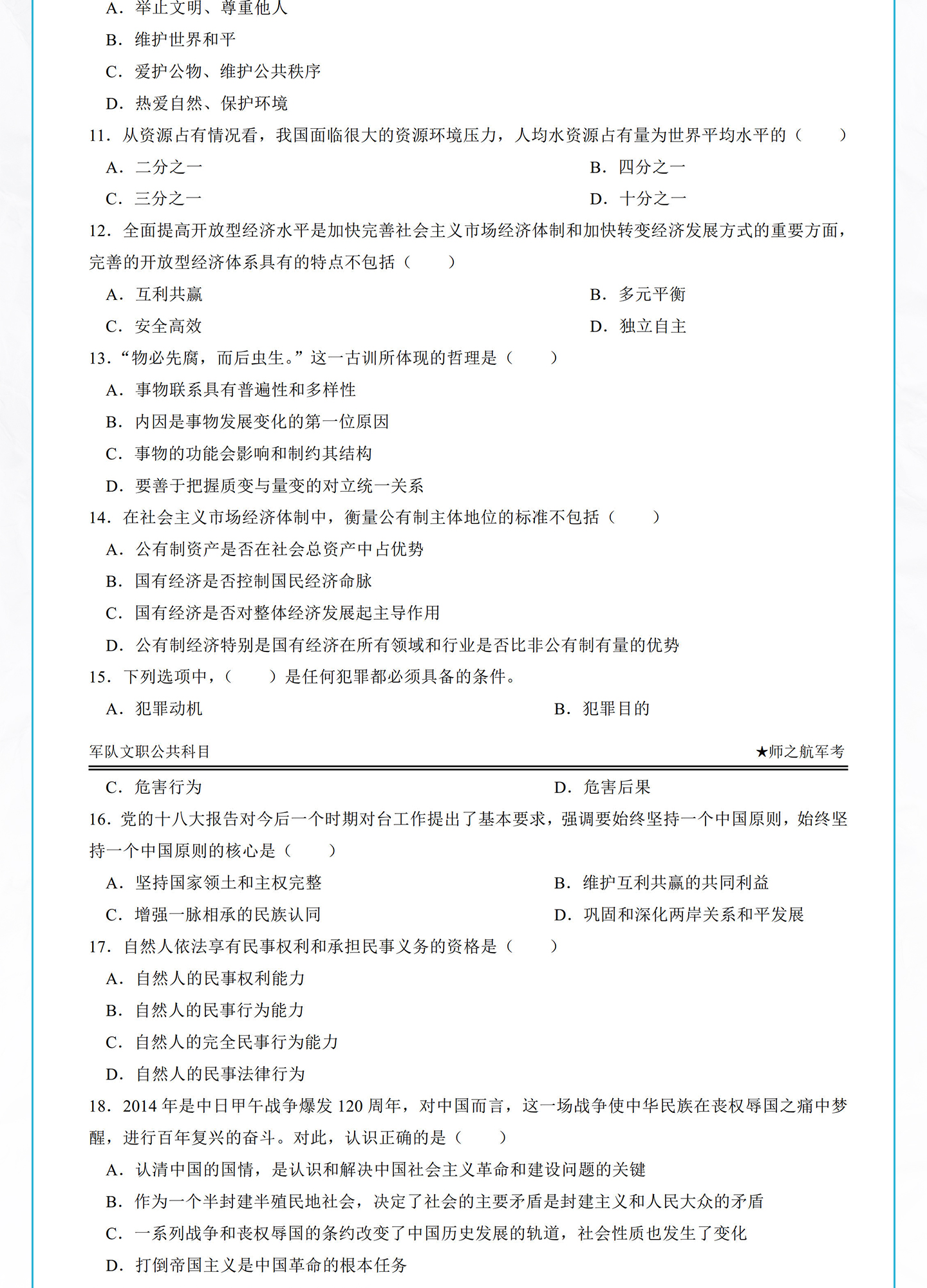 2014-2024军队文职人员公共科目考试历年真题试卷考试资料(无17年)