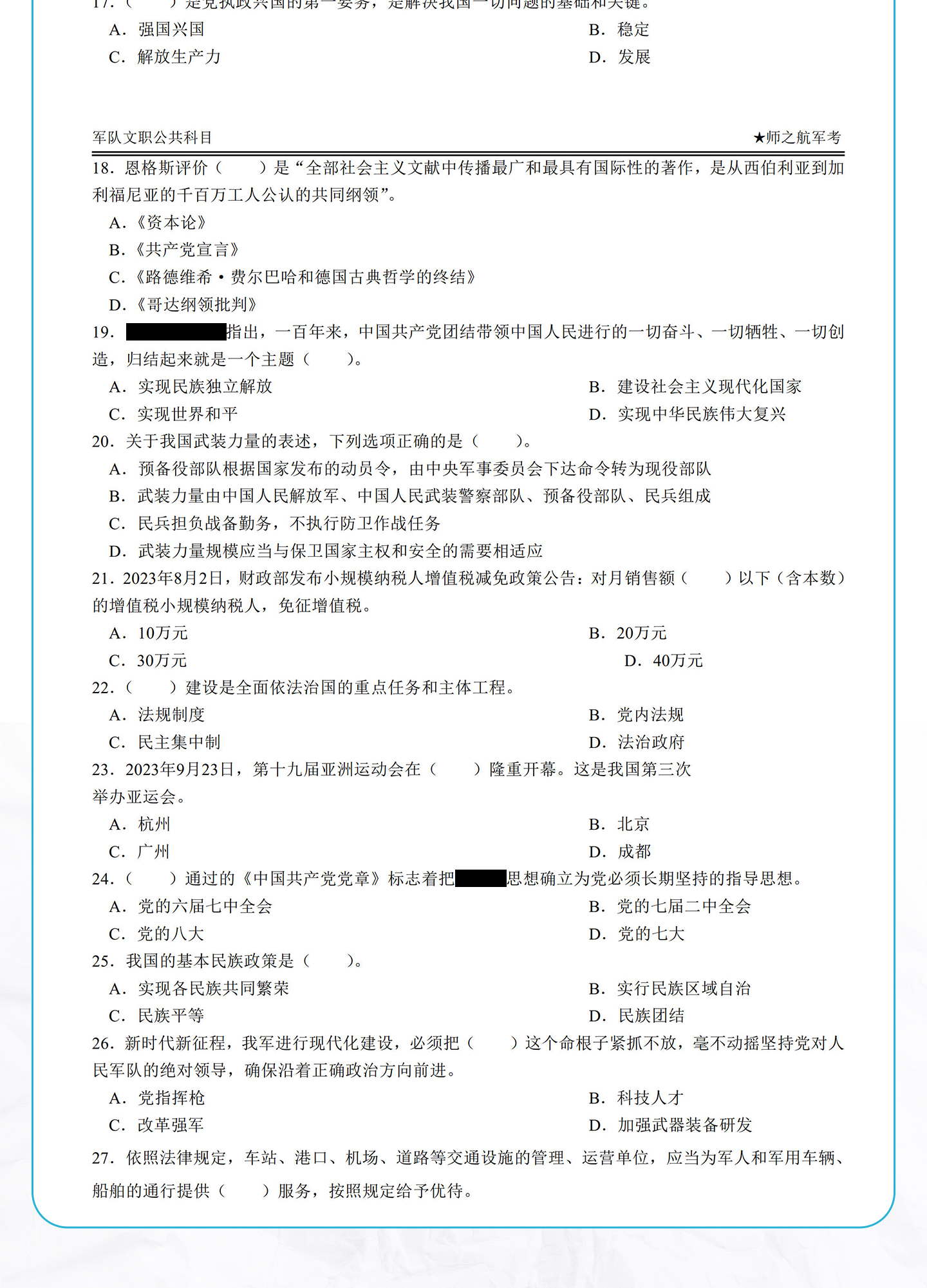 实物2026年高中士兵考军校阶段性测验练习考军官阶段卷